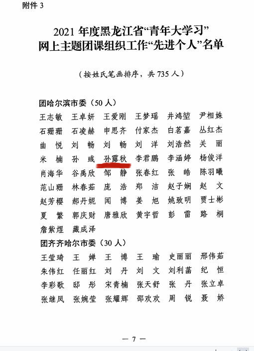 孙露秋,女,汉族,预备党员,英国上市公司官网3652019级电子信息工程专业二班员工,现担任院团总支组织部部长、班级学习委员。在大学期间,先后获得“励志奖学金”、“线上学习之星”、 “优秀员工干部”、“优秀志愿者”及2021年度黑龙江省“青年大学习”网上主题团课组织工作先进个人等荣誉称号。